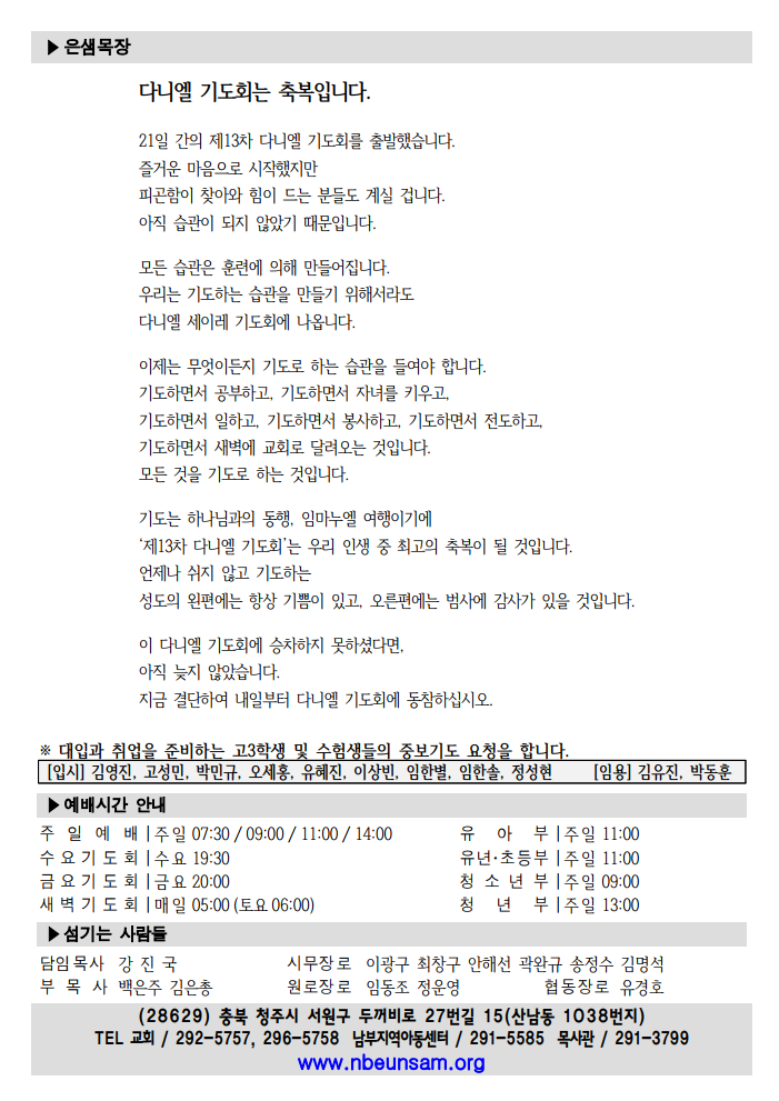 ³²ºÎÀº»ù±³È¸ ûÁֽà ¼¿ø±¸ µÎ²¨ºñ·Î 27¹ø±æ 15(»ê³²µ¿ 1038) TEL : 043-292-5757 / FAX : 043-296-5758