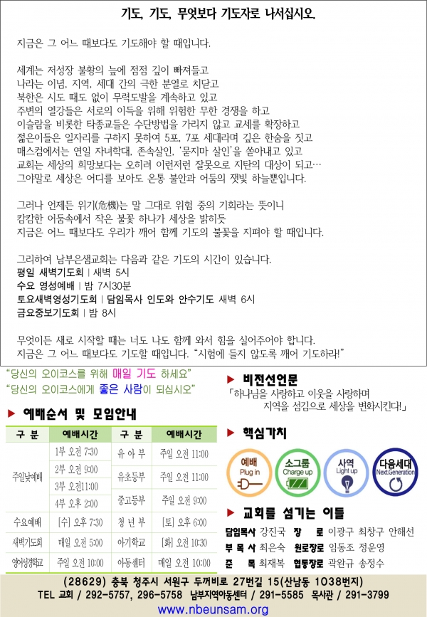 ³²ºÎÀº»ù±³È¸ ûÁֽà ¼¿ø±¸ µÎ²¨ºñ·Î 27¹ø±æ 15(»ê³²µ¿ 1038) TEL : 043-292-5757 / FAX : 043-296-5758
