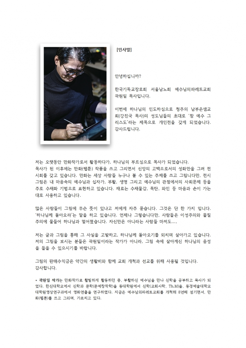 °û¿øÀÏ ¸ñ»ç °³ÀÎÀü 'Âü ¿¹¼ö ±×¸®½ºµµ'