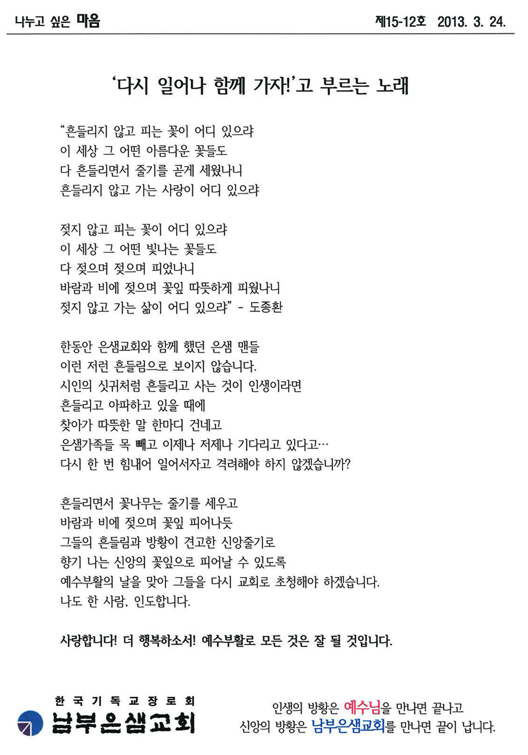 ³ª´©°í ½ÍÀº ¸¶À½ - ¡®´Ù½Ã ÀϾ ÇÔ²² °¡ÀÚ!¡¯°í ºÎ¸£´Â ³ë·¡ (2013-3-24)