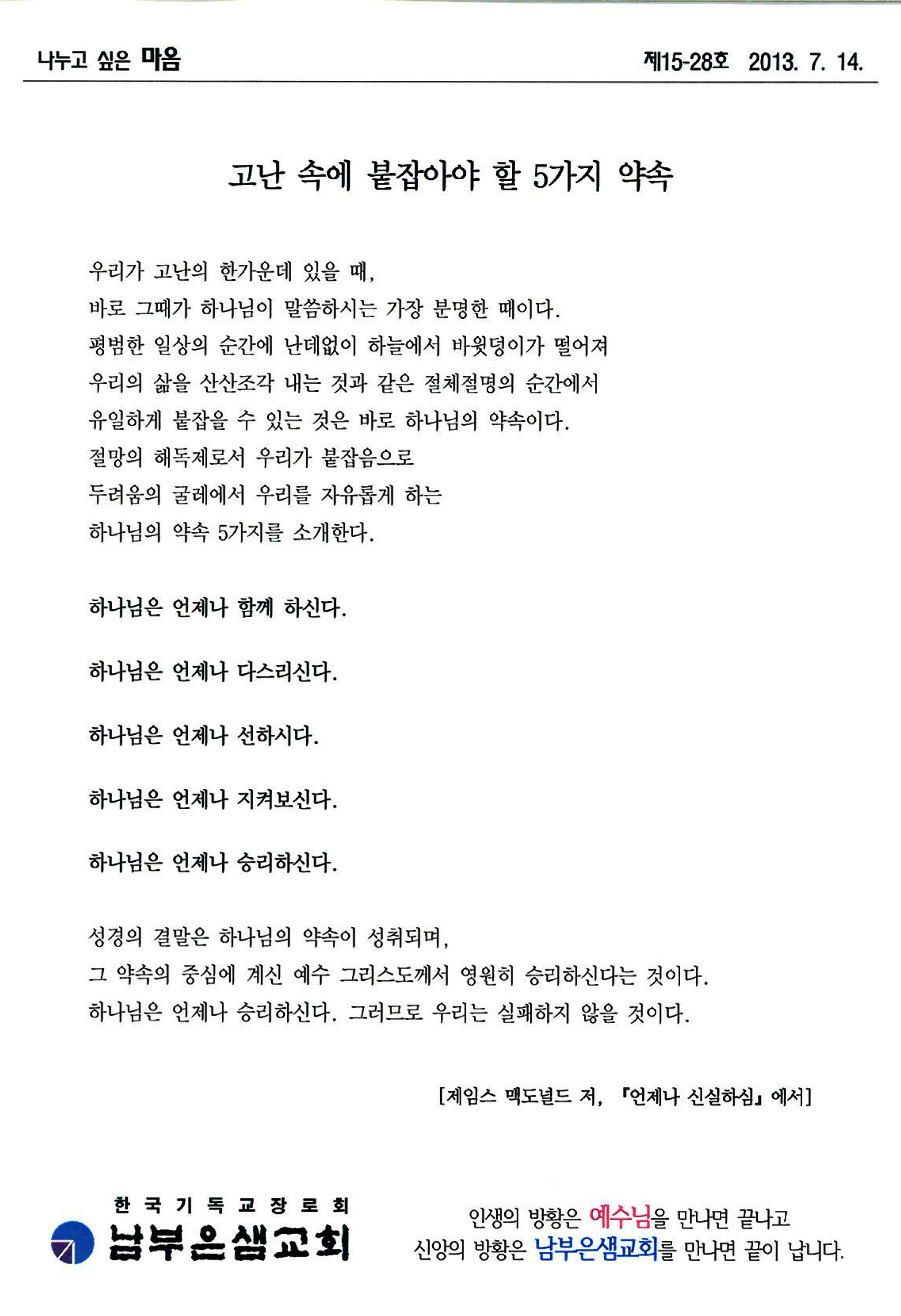 ³ª´©°í ½ÍÀº ¸¶À½ - °í³ ¼Ó¿¡ ºÙÀâ¾Æ¾ß ÇÒ 5°¡Áö ¾à¼Ó (2013-7-14)