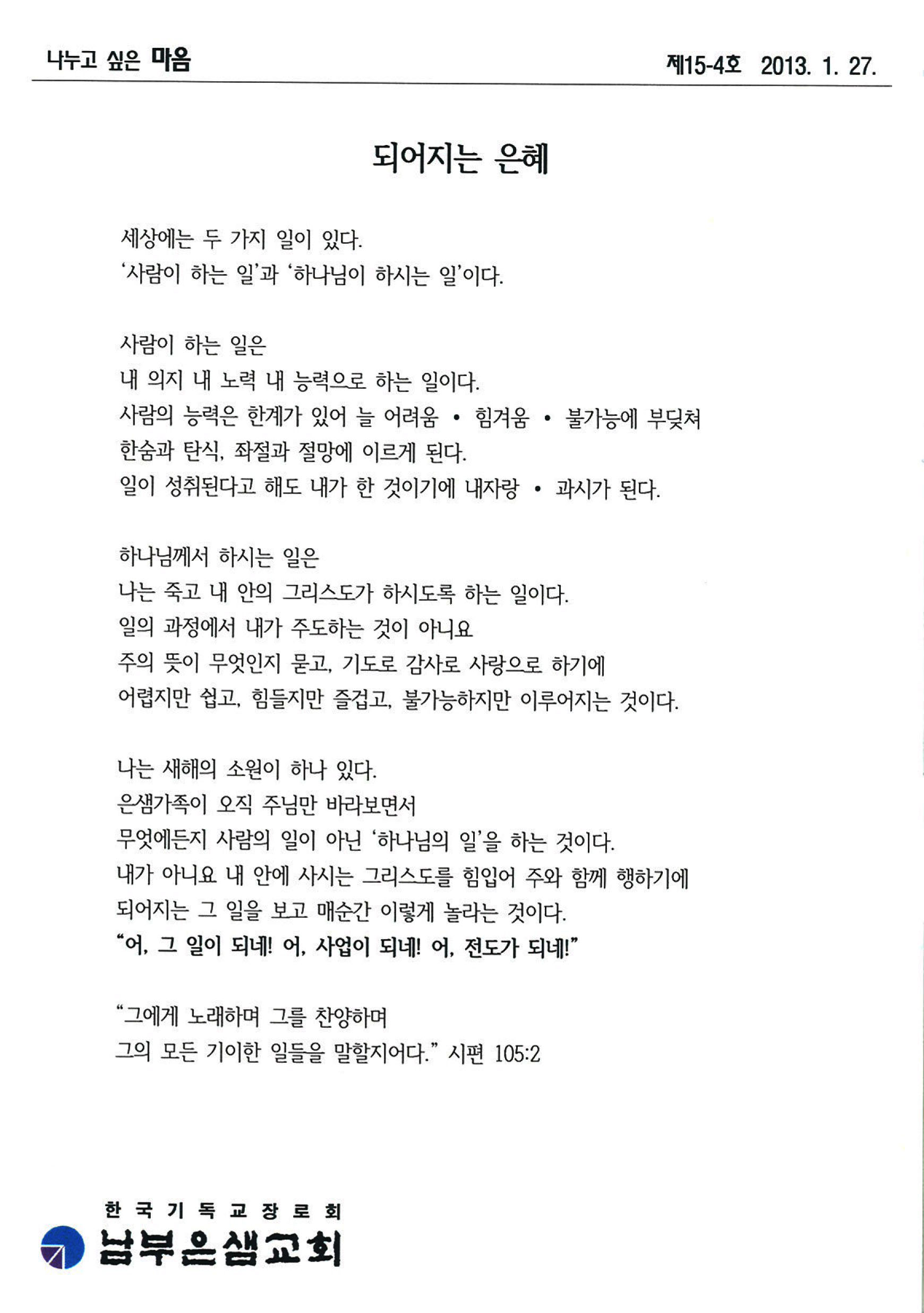 ³ª´©°í ½ÍÀº ¸¶À½ - »ý¼öÀÇ °ÀÌ È帣´Â ±³È¸(2013-2-10)