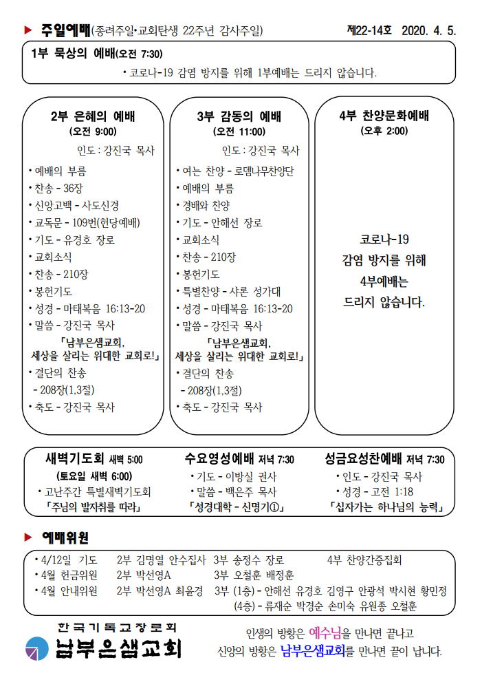2020-04-05 ±³È¸ ÁÖº¸