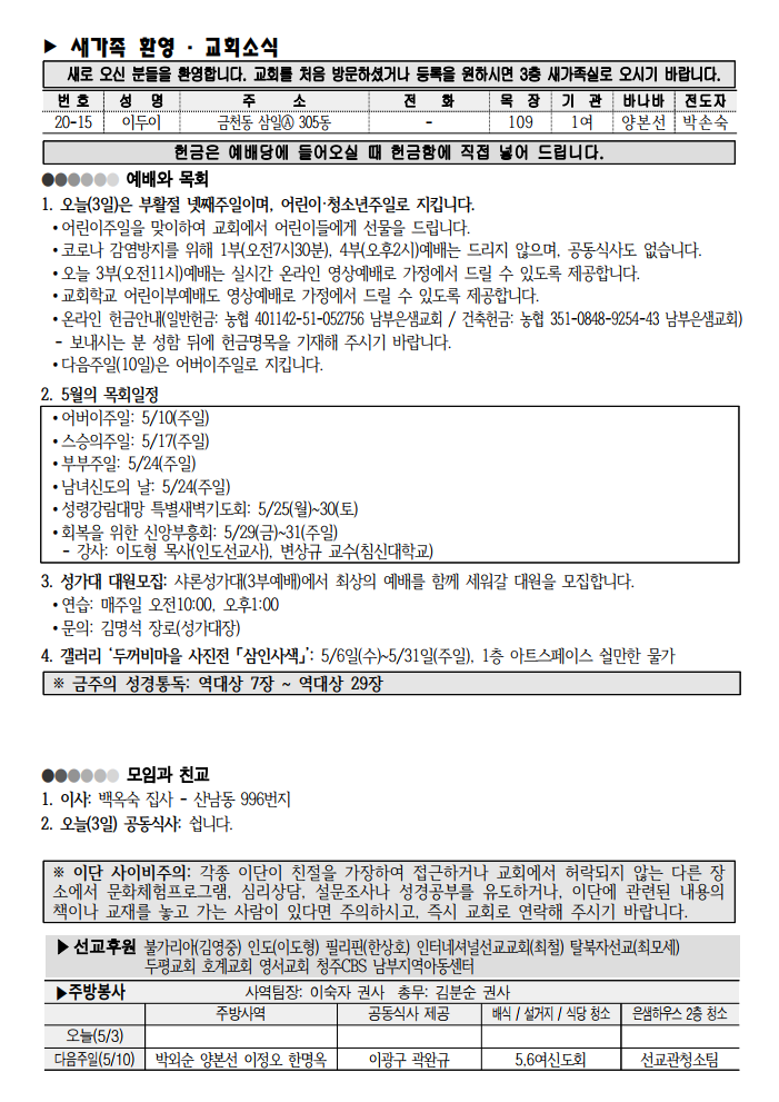 2020-05-03 ±³È¸ ÁÖº¸